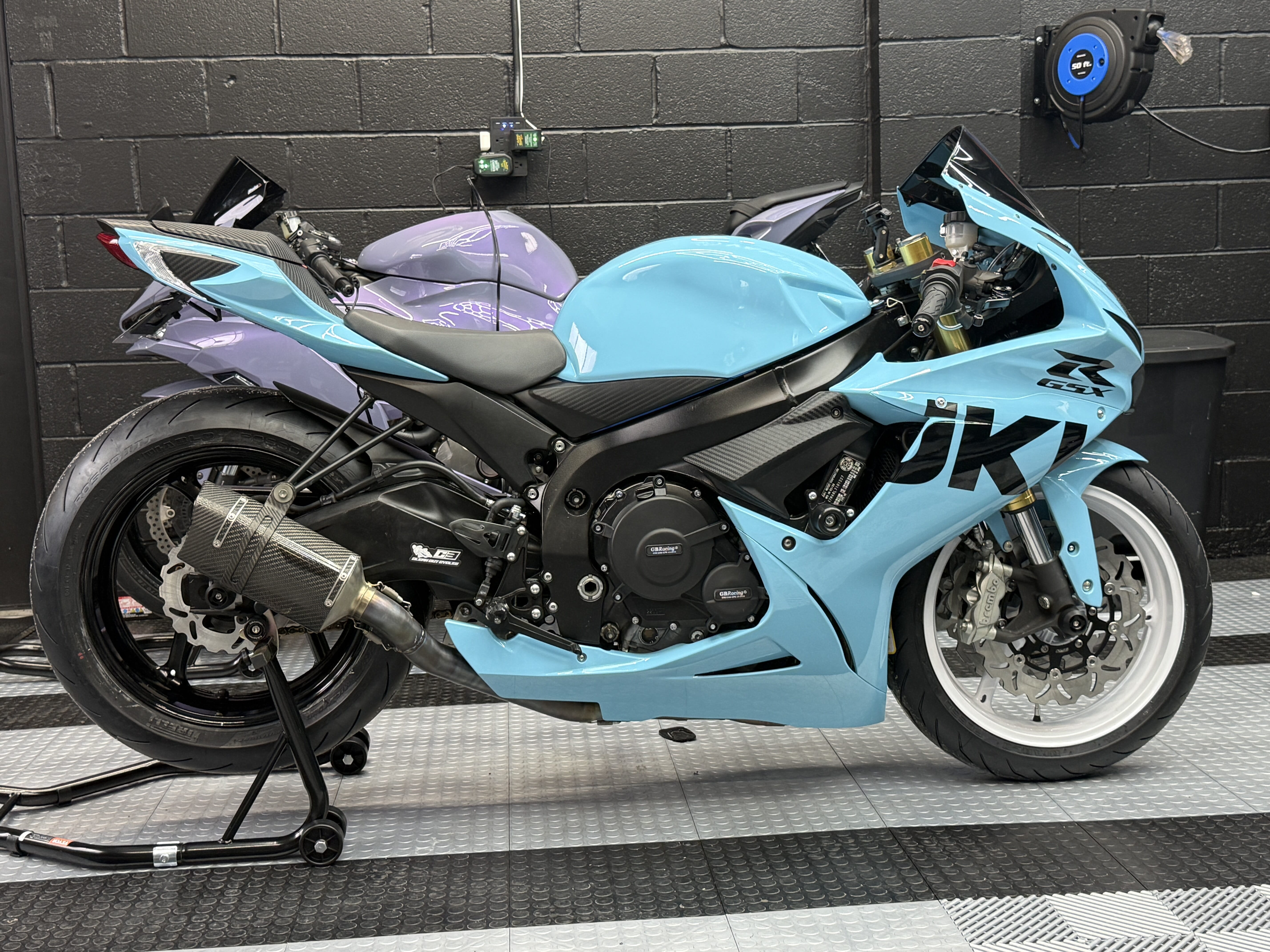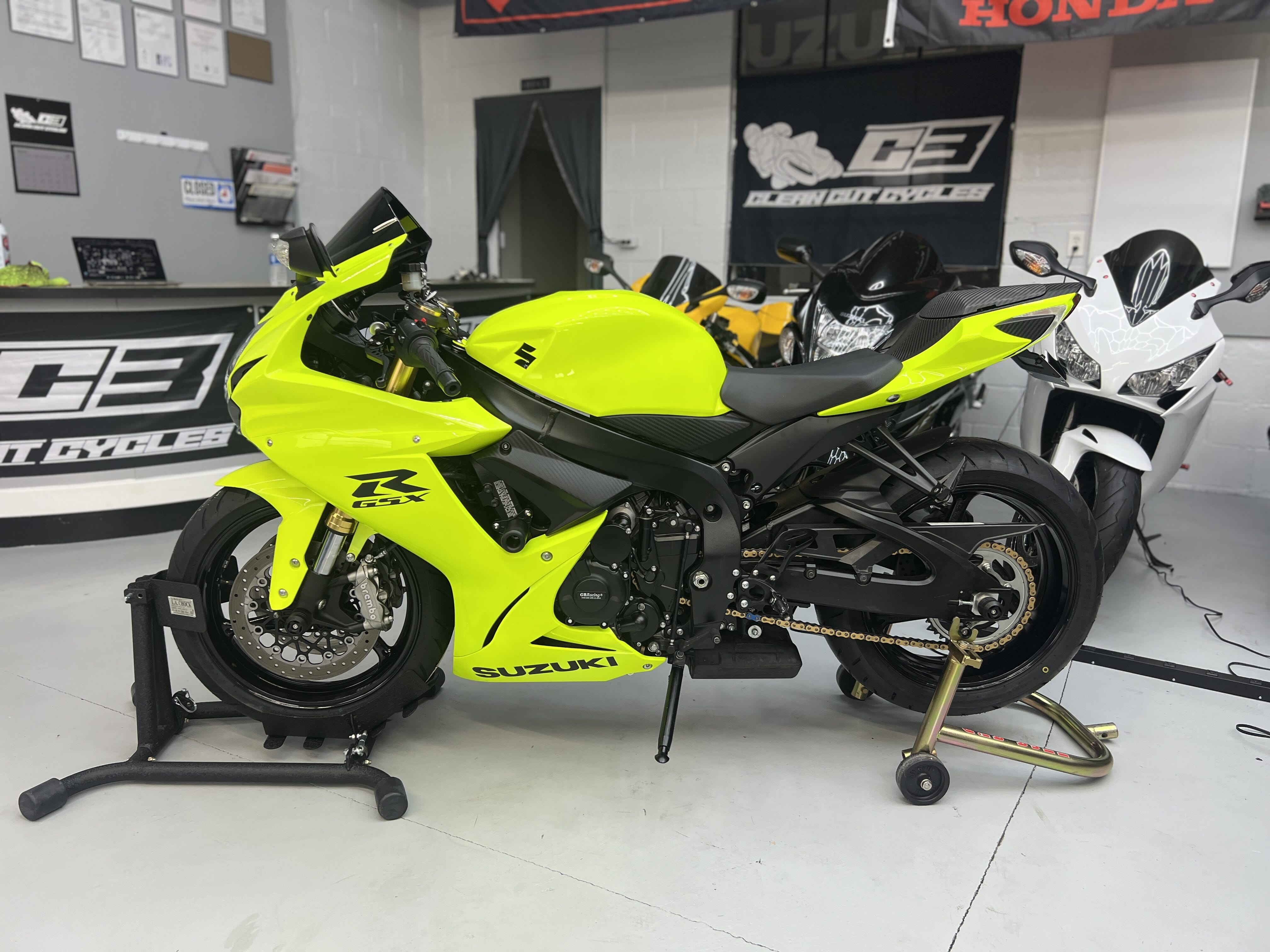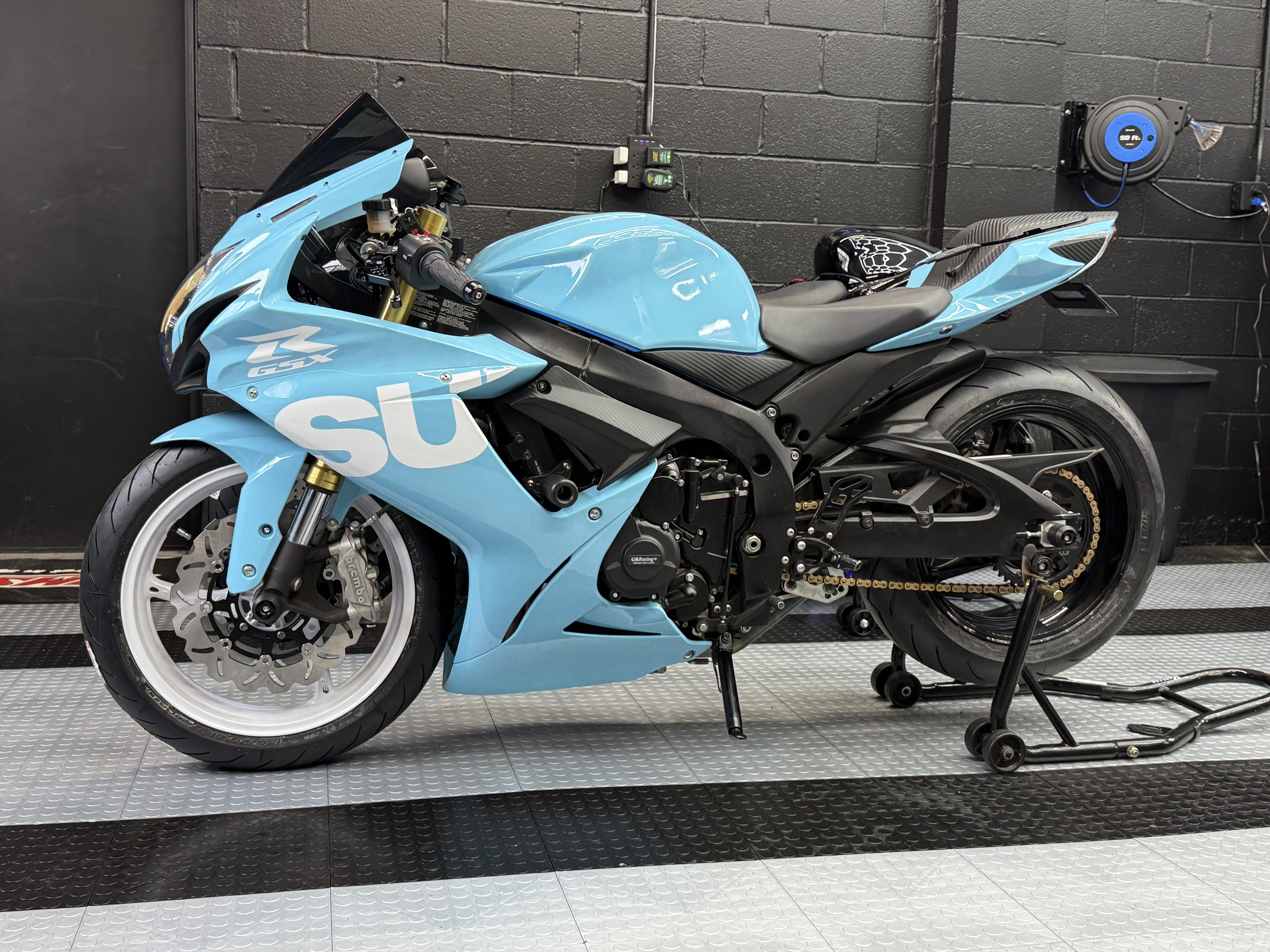 -This Canadian GSXR was built from the ground up. It was originally sold by us in March 2025 and the owner went down on it later that year. It came up for sale needing a bunch of work and being the rare bike it is we just had to have it back knowing this would make a perfect shop build. So it was stripped completely down to the frame and EVERYTHING except the main frame and motor has been replaced and upgraded to the beautiful bike you see below. It was built with the intention to keep it and have my son ride it for his 1st Sportbike this year so no expense was spared. However, with the new build below, he might get the GSXR1000 above and this bike just MIGHT become available to the public in the near future so keep a look out!!!