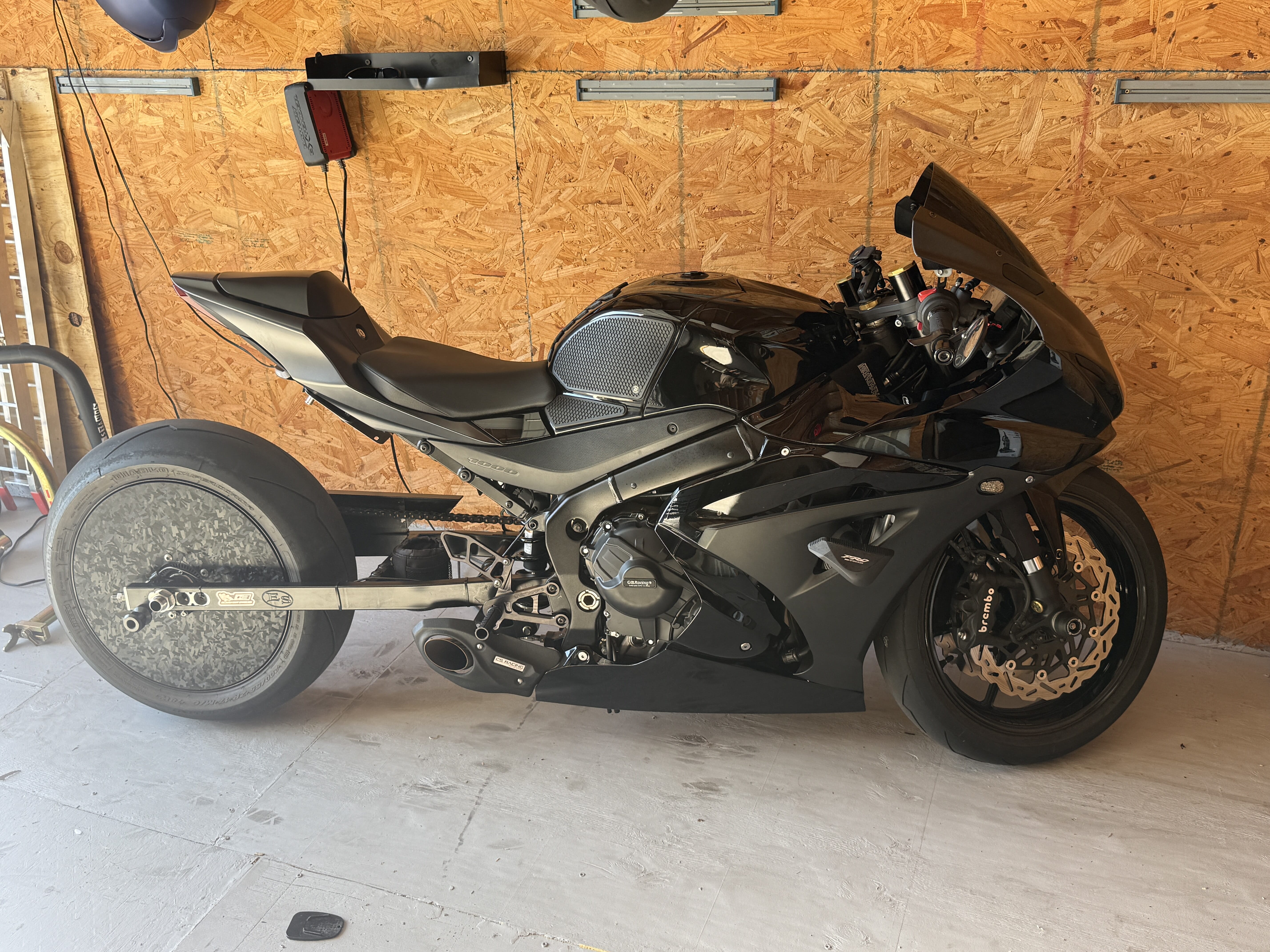 Custom Fairings, Full M4 Exhaust, Sprint Air Filter, ECU Flash, Contrast Rims, Black Windscreen, NRC LED Mirror Block Offs, Fender Eliminator, Driven Keyless Fuel Cap, Custom Brake Rotors Front and Rear, Axle Sliders Front and Rear, Shogun Frame Sliders, GB Racing Engine Covers, Vortex Steel Sprockets, Driven Sprocket its, GB Racing Spools, Roaring Toyz Rear Lowering Links, Adjustable Kickstand, Lowered 1” Front, LED Headlights, Rosso III tires (190 rear), Domino Grips, On Point Race Rails, On Point Sub Cage